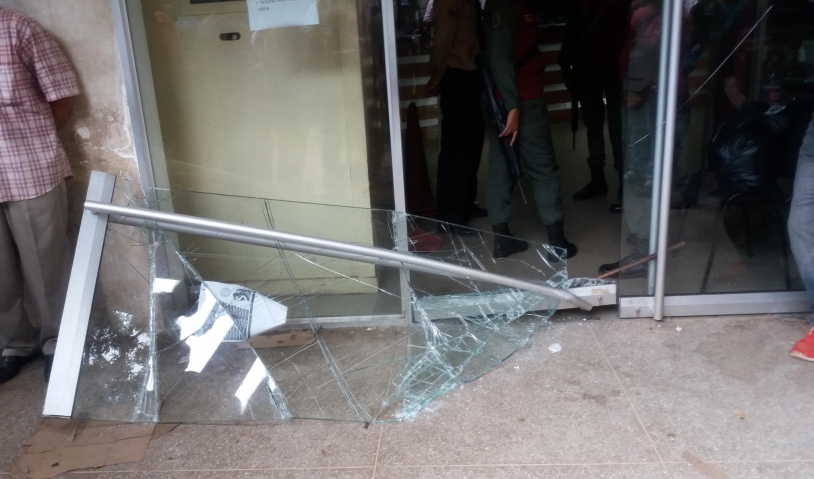 En horas de la tarde de ayer un grupo de personas protestaron frente del Banco Bicentenario en la Av. Aguerrevere
