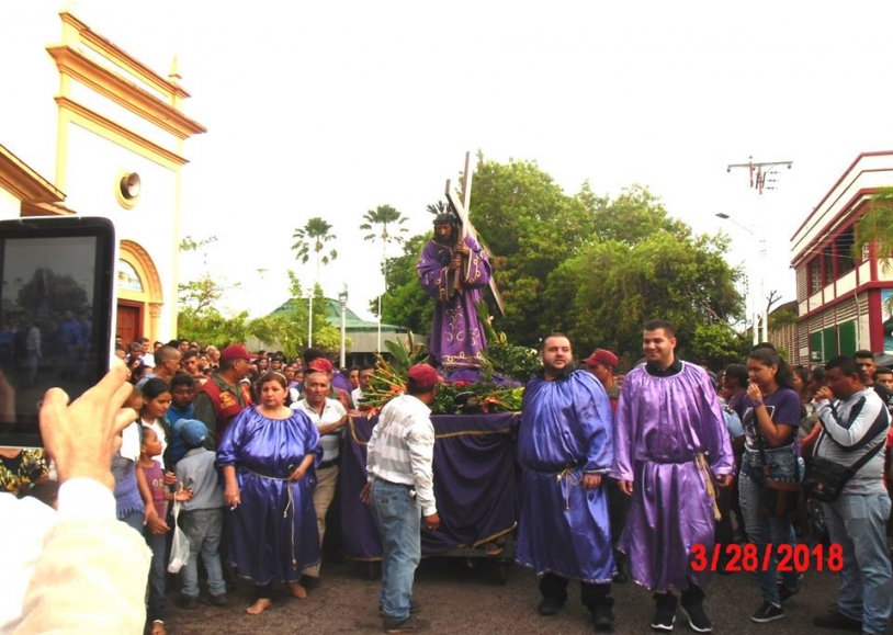 Después de una Misa muy concurrida en la Catedral de Puerto Ayacucho la imagen del Nazareno volvió a salir en procesión como cada miércoles santo. La misa fue celebrada por Monseñor Jonny Reyes acompañado del párroco de la Catedral Luis Azzallini y del Padre Frank González.