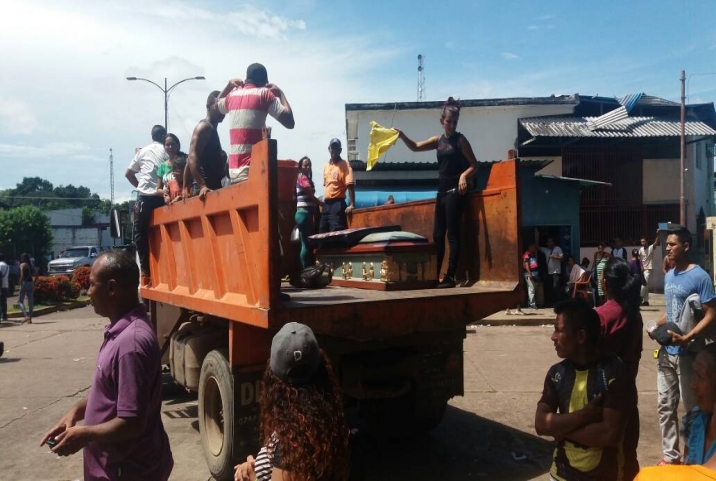 Familiares de fallecidos en el Centro de Detención Judicial del Edo. Amazonas (CEDJA), retiraron cuerpos el día de hoy luego de 24 horas de ocurrir el enfrentamiento. Amigos colaboraron en camiones tipo volteo, 350, y camionetas.