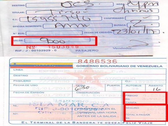 Pasajeros se quejan del sobreprecio del pasaje con destino a la ciudad de Caracas en la línea ISLAMAR, un pasaje de Puerto Ayacucho a la ciudad de Caracas cuesta 9.000 bs, y de regreso de Caracas a Puerto Ayacucho sale en 4.232 bs un descuento del 52%. Denunciante Tirson Chirinos hace un llamado a la gerencia municipal del terminal Melicio Perez, a la SUNDDE y la misión transporte para que analicen el sobreprecio que pagamos los amazonense en el pasaje con destino a Caracas.