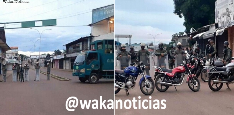 (Waka Noticias. Puerto Ayacucho, 19/08/2020).- Luego de conocerse a través de la cuenta en Facebook del gobernador Miguel Rodríguez, con motivo a la reubicación de los comerciantes informales del sector de Barrio Unión, este miércoles las principales avenidas de Puerto Ayacucho amanecieron militarizadas, cerradas en los puntos más críticos de la capital amazonense.