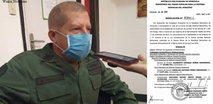 (Waka Noticias. Puerto Ayacucho, 20/07/2020).- A través de un comunicado emitido por el Ministerio del Poder Popular para la Defensa a cargo del G/J Vladimir Padrino López, por disposición del presidente de la República Nicolás Maduro, según resolución 036811 de fecha 15 de julio de 2020, se pudo conocer el nombramiento de la ratificación del G/D Angelvis Pérez en el cargo como comandante de la Zona Operativa de Defensa Integral (ZODI) 63 Amazonas.