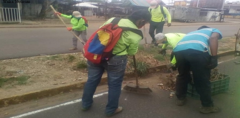 (Waka Noticias. Puerto Ayacucho, 18/04/2020).- Desde que se implementó la cuarentena en Puerto Ayacucho el pasado 16 de marzo, a consecuencia de la emergencia nacional por el Covid-19, enmarcado en la Misión Venezuela Bella en el estado Amazonas, se realiza a toda marcha en la capital amazonense, la jornada nacional de limpieza, desinfección y embellecimiento en las diferentes calles, avenidas, mercados, establecimientos comerciales e instituciones de la región, como parte de los lineamientos emanados por el Ejecutivo nacional, para dar cumplimiento a las medidas sanitarias para combatir la pandemia, que hasta la fecha no se ha registrado ningún caso positivo en la entidad.