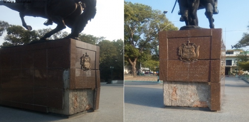 (Waka Noticias. Puerto Ayacucho, 25/03/2020).- Con cierto grado de preocupación los habitantes de Puerto Ayacucho observan diariamente como la estatua ecuestre del padre de la Patria en la plaza Bolívar, se desmorona diariamente ante la mirada de las autoridades regionales, quienes no reaccionan para recuperar este monumento histórico en la capital amazonense.
