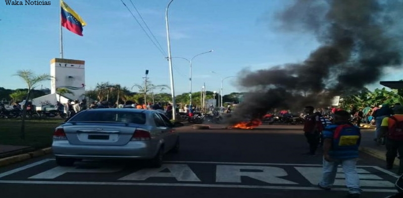(Waka Noticias. Puerto Ayacucho, 26/12/2019).- Motorizados que hacían cola desde hace 5 días en la estación de servicio Cataniapo, cerraron este jueves la entrada a Puerto Ayacucho, estado Amazonas, en protesta por el suministro de combustible.