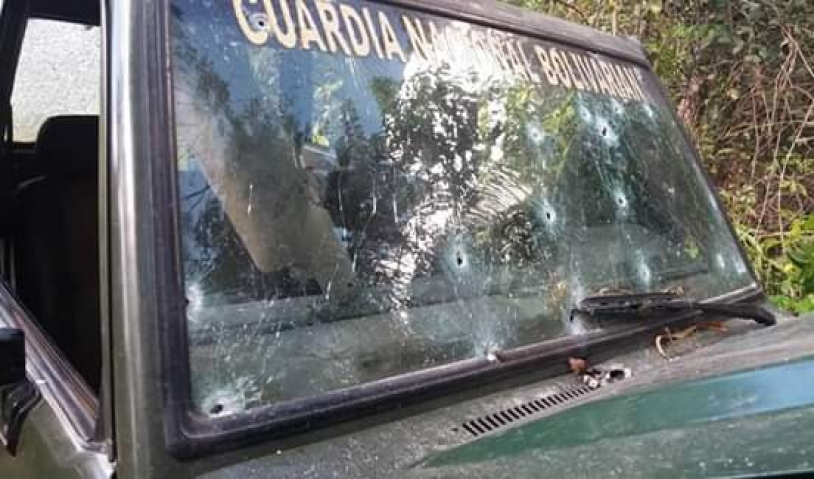 La periodista Carolina Azavache, mostró en su cuenta de Twitter “@CarolinaAzavach” supuestas imágenes de vehículos utilizados por parte de la GNB en la emboscada ocurrida en la comunidad Picatonal. En las imágenes se muestran como quedaron los mismo luego de que fueran atacados por grupos de irregulares.