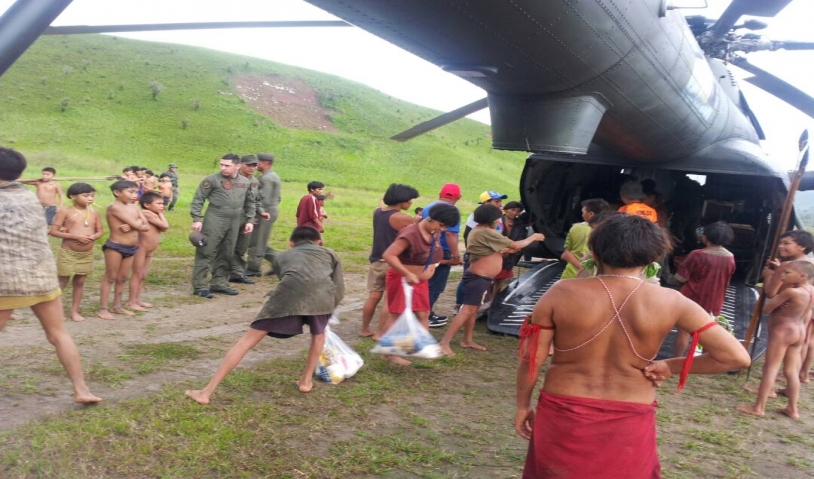 Yamileth Mirabal, viceministra para el Hábitat, Tierras y Desarrollo Comunal con Identidad para los Pueblos Indígenas, agradeció el apoyo de la Fuerza Armada Nacional Bolivariana por el traslado aéreo de los rubros e insumos para los hermanos indígenas de esta comunidad.