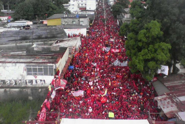 Todo comienza cuando el candidato Miguel Rodriguez, sorprendió a la muchedumbre, con una caminata que inicio con la última persona que se encontraba en la concentración, realizando un recorrido entre sus seguidores para estrechar directamente su mano, incluso tomarse fotografías y selfi con quienes así lo solicitaron. Esto genero una avalancha de personas, en vista de que se iban sumando a la caminata que termino en la escalera de la tarima principal, que se encontraba instalada al tope más alto de la avenida Orinoco muy cerca de la esquina de la planta vieja.