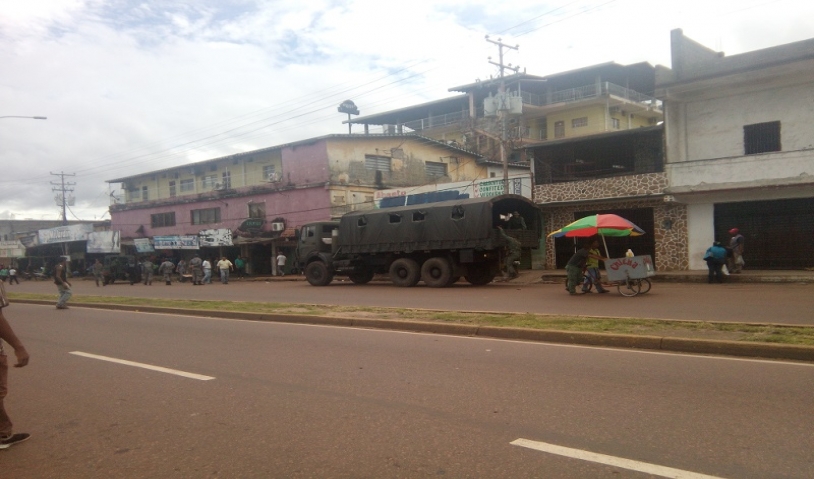 Puerto Ayacucho.- El día de hoy un grupo de militares pertenecientes al Ejercito Bolivariano tomaron el control de la av. Orinoco a la altura del mercado el pescado y el mercado 60 aniversarios para controlar la venta de comida subsidiada por el gobierno nacional.