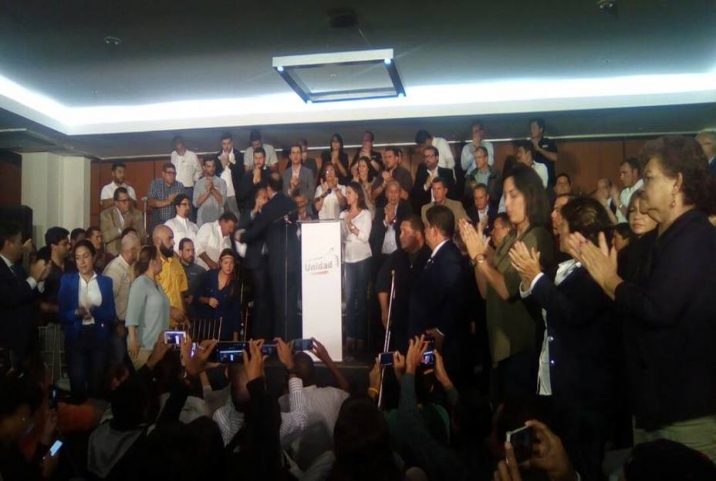 La MUD informó que comunicará al país los resultados del Gran Acuerdo Nacional para la Gobernabilidad y Rescate de Venezuela, construido entre los actores políticos y diversos sectores de la sociedad. Borges negó que mantengan conversaciones con factores del gobierno: “Dios ciega a quienes se aferran al poder”. Sin embargo, dijo que en un gobierno de transición o de unidad nacional incluirá a “a todos los que respetan la Constitución, vengan o no del oficialismo. La meta es construir un gobierno de unidad nacional, no de la oposición”.