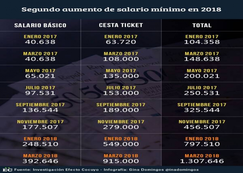 Este nuevo anuncio del presidente Maduro corresponde al segundo aumento durante el 2018, dando un ingreso mensual a los venezolanos de 1.307.546 bolívares.