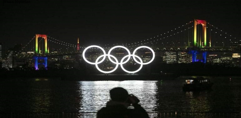 (Waka Noticias. Puerto Ayacucho, 27/01/2020).- Unos enormes aros olímpicos quedaron iluminados este viernes en una bahía de esta capital, seis meses antes de que comience Tokio 2020, en un acto que incluyó un espectáculo de fuegos artificiales que adornaron el cielo tokiota para marcar la ocasión.