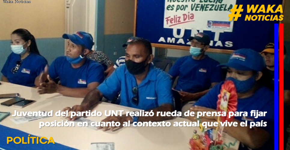 (Waka Noticias. Puerto Ayacucho, 12/02/2021).- En la sede regional del partido político Un Nuevo Tiempo (UNT) en Amazonas, se llevó a cabo este viernes una rueda de prensa, en el marco de la conmemoración del Día de la Juventud, para fijar posición acerca de los sucesos y acontecimientos que a diario ocurren en la entidad amazonense.