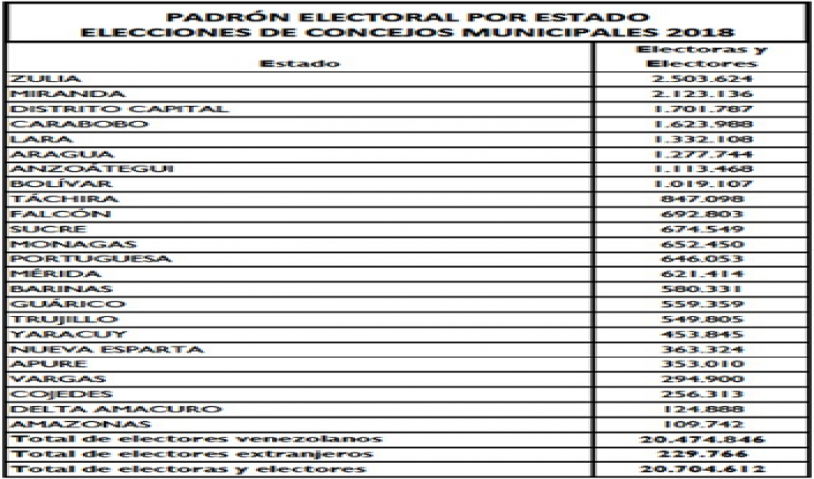 (Waka Noticias. Puerto Ayacucho, 24/10/2018).- Esta semana el Consejo Nacional Electoral (CNE) aprobó el Registro Electoral definitivo para las Elecciones Municipales que se llevarán a cabo el próximo domingo 9 de diciembre, donde se logró la cifra de 20.704.612 votantes de los cuales 20 millones 474 mil 846 son venezolanos, mientras que 229 mil 766 son extranjeros con más de 10 años de residencia en el país.